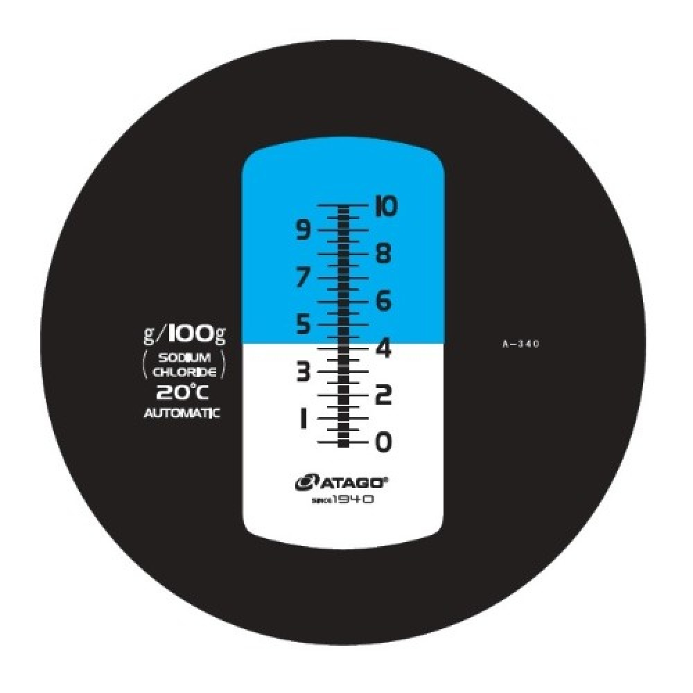 Прибор показывает концентрацию NaCl в водных растворах и его можно использовать для контроля концентрации соленой воды, тузлука. Корпус прибора выполнен из специального материала (Полибутилентерефталат), стойкого к соленым и кислым образцам. Рефрактометр снабжен функцией автоматической температурной компенсации (ATC) и имеет уровень защиты от пыли и воды IP65. Калибровка по чистой (дистиллированная) воде.
