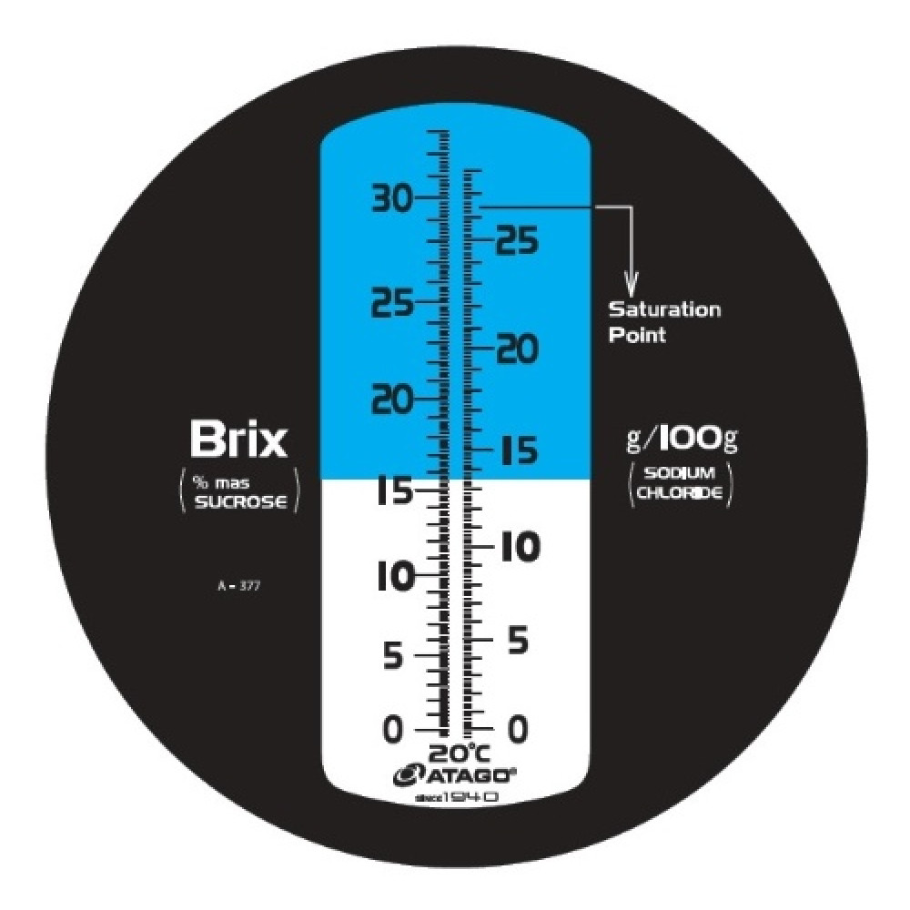 Рефрактометр оснащен двойной шкалой: Brix% и Концентрация NaCl (соль). Это позволяет проводить быстрые и удобные измерения как концентрации образца, так и его солености!